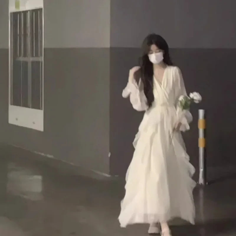 Step into timeless sophistication with this Elegant White Long Sleeve Dress, a must-have for any wardrobe that exudes grace and refinement. Perfect for formal occasions, daytime events, or even as a statement piece for a casual gathering, this dress combines classic beauty with modern style.