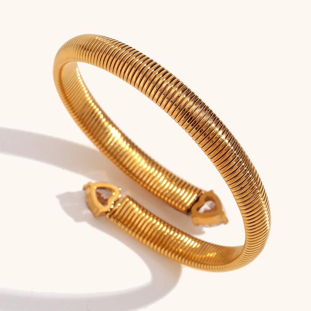 Color: heart-shaped zircon opening striped bracelet with two ends-Golden-white diamond